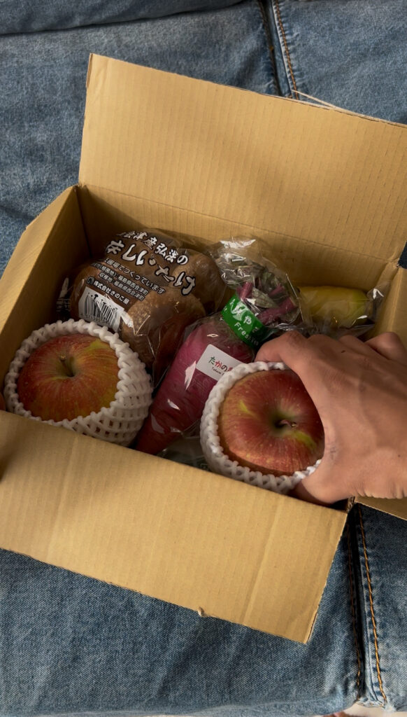 見にくいですが、りんご、にんじん、しいたけ、一番下に米も入ってました☺️