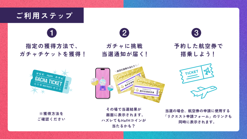 • 選べる往復空旅ガチャで国内・海外航空券が当たるチャンス!