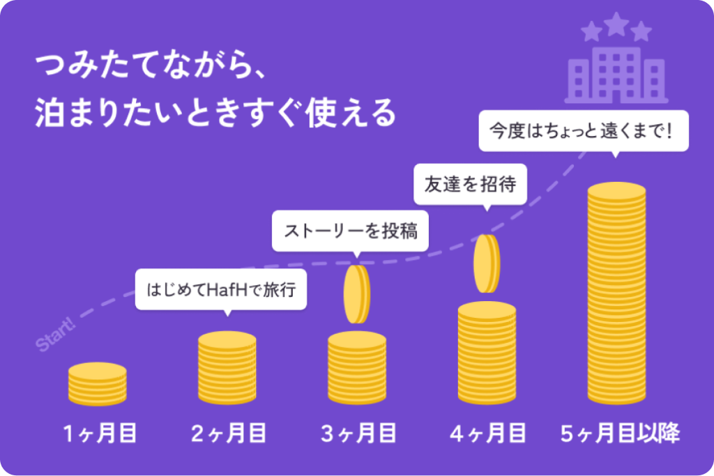 HafH(ハフ)とは、メンバーシップ制のつみたて旅行サービス。