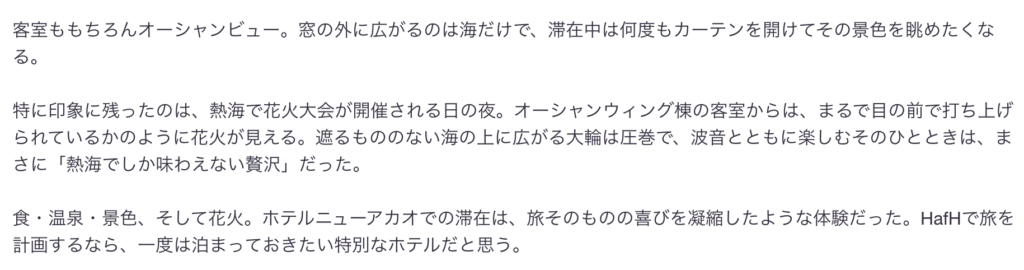 2025年9月/ホテルニューアカオ(熱海)を利用した方(HafH公式サイトより)