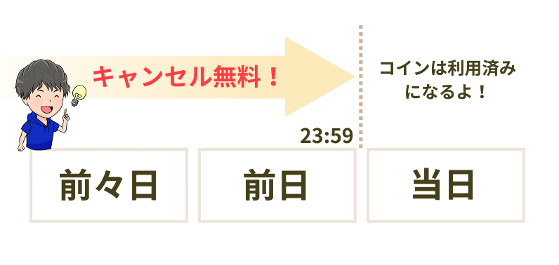 ただ、当日のキャンセルはどんな理由でもできないから注意してね!