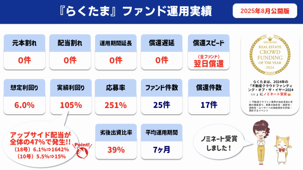 でも、らくたまは遅延が起きないように最後は自分たちで買い取りますって宣言してるから安心感があるよ💪