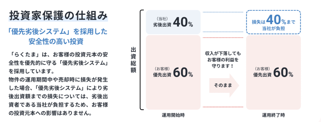 優先劣後というシステムを使って投資家を守ってるよ🛡️