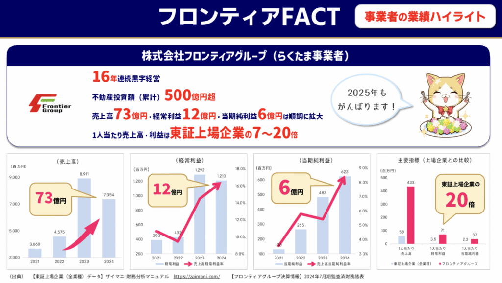 運営してる株式会社フロンティアグループは16年連続で黒字経営してる!