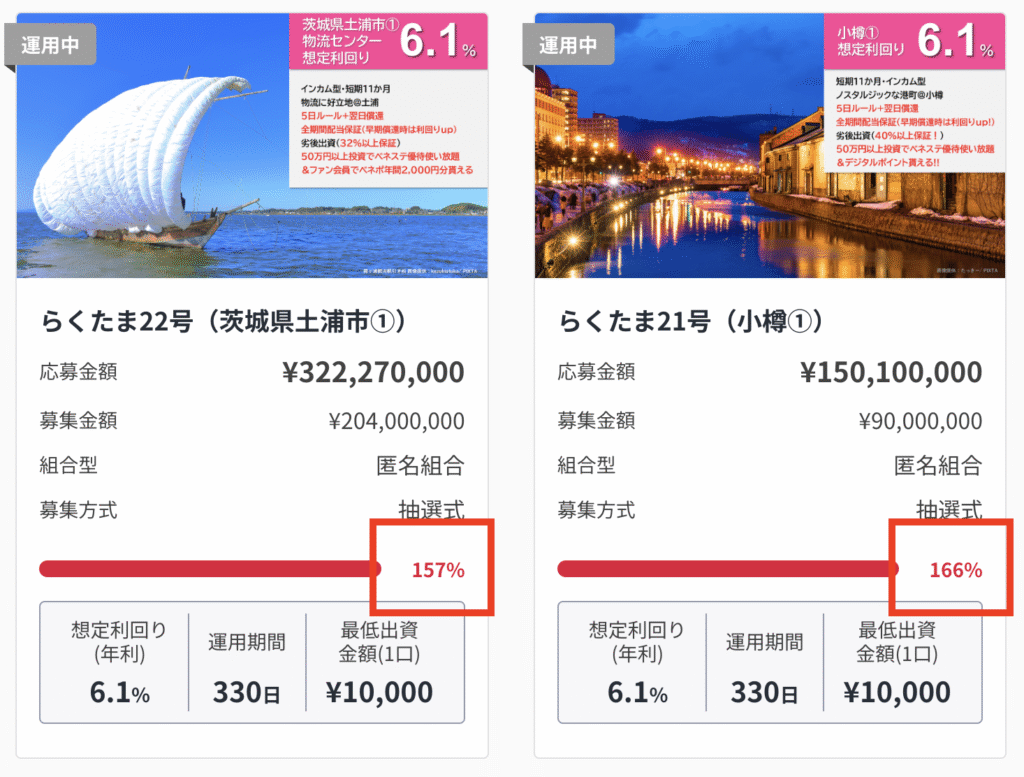 らくたまは抽選式で募集されているから、必ず投資できるわけではないよ💦