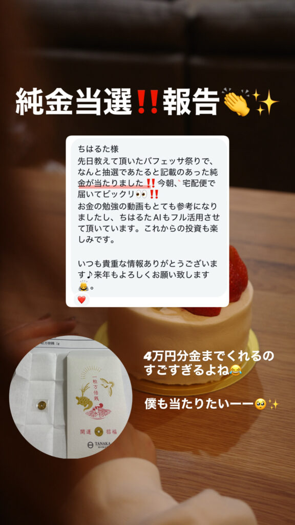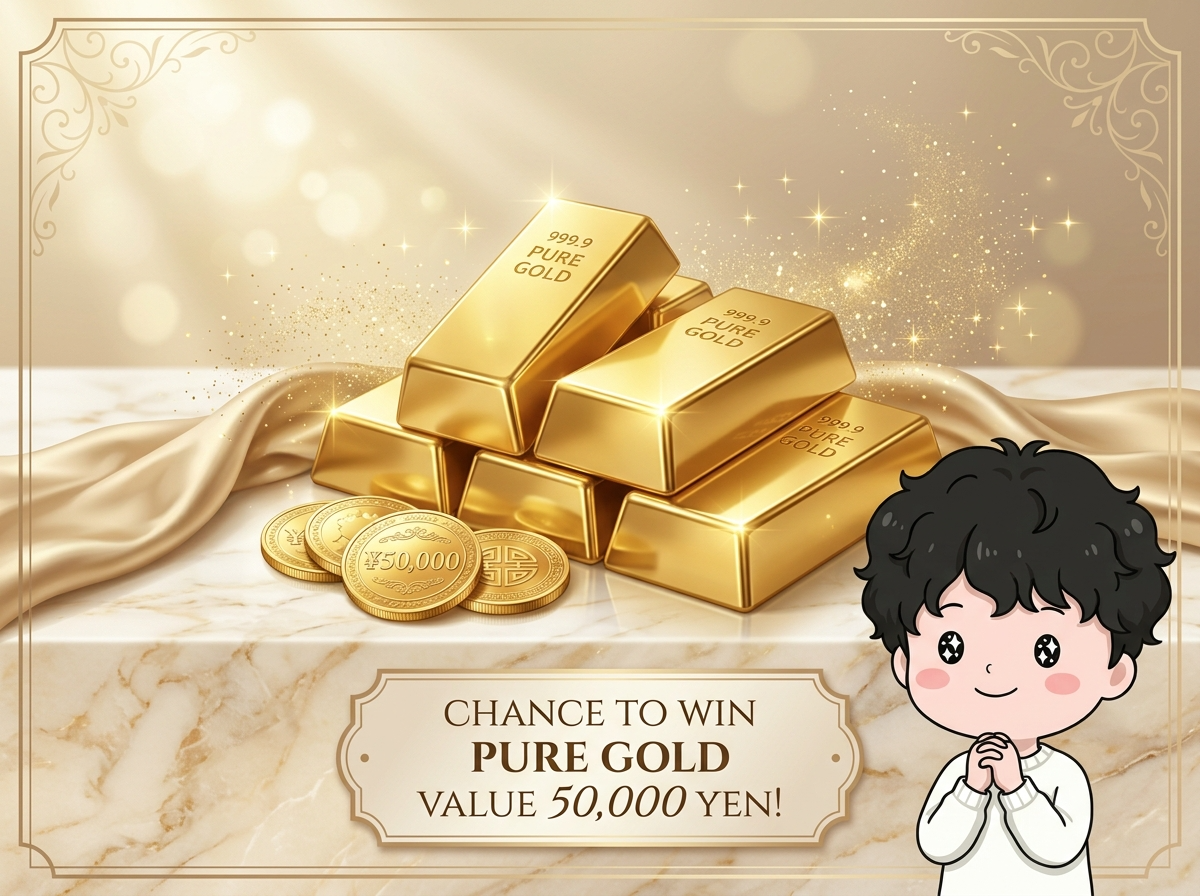 抽選で20名に5万円分の純金当たる🥇‼️