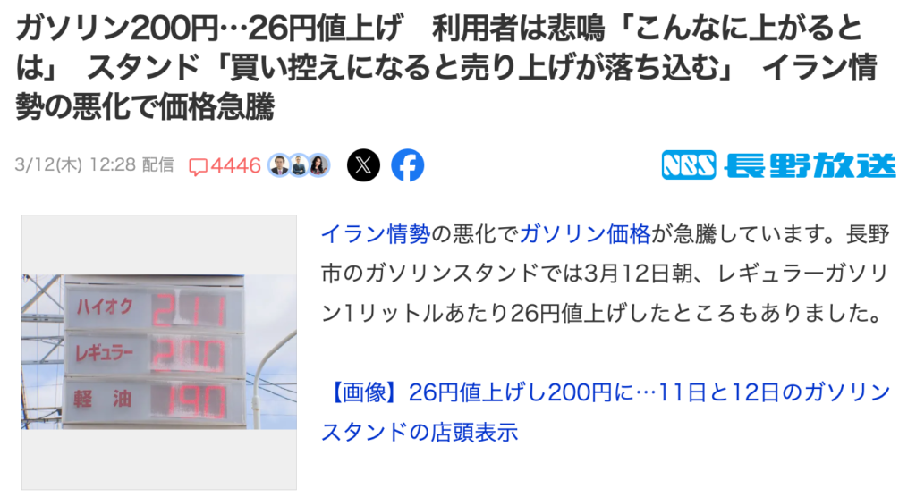 最近ガソリンが爆上がりして生活がキツくなってきたね…😭