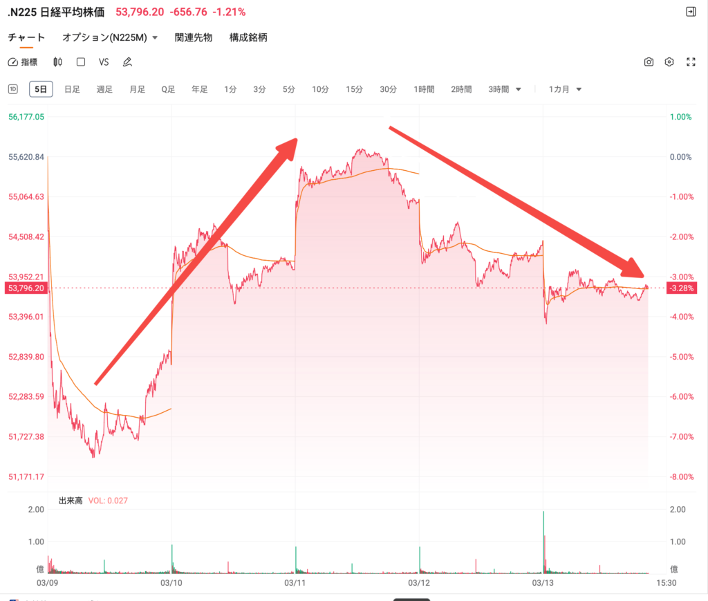 引用元:moomoo証券日経平均株価チャート3/13日時点