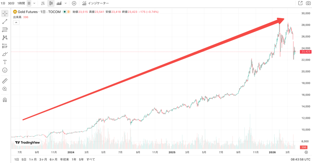 ちなみに金の価格は鰻のぼりで